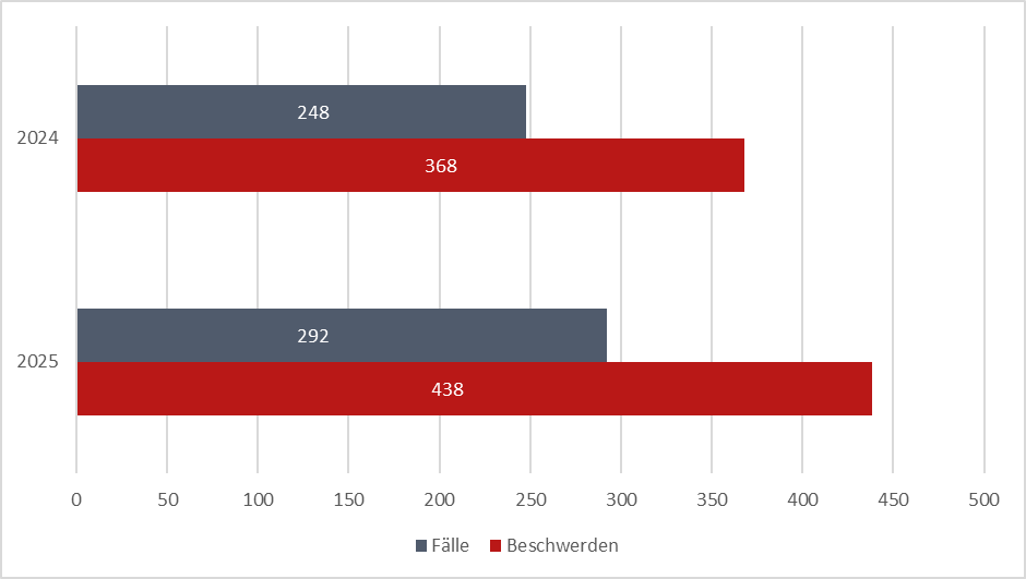Im Jahr 2025 haben 438 Beschwerden zu insgesamt 292 Entscheidungen geführt.